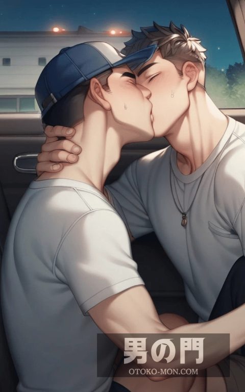 狭い車内で全裸になりキスをしながらお互いの身体をまさぐり合う。