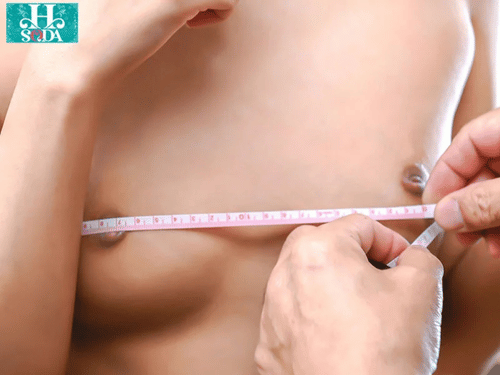 ヒヤリングを行い、いざ施術が始まるとサイズを測ったり乳首を弄ったりされ気持ち良くなってしまうチナミ。